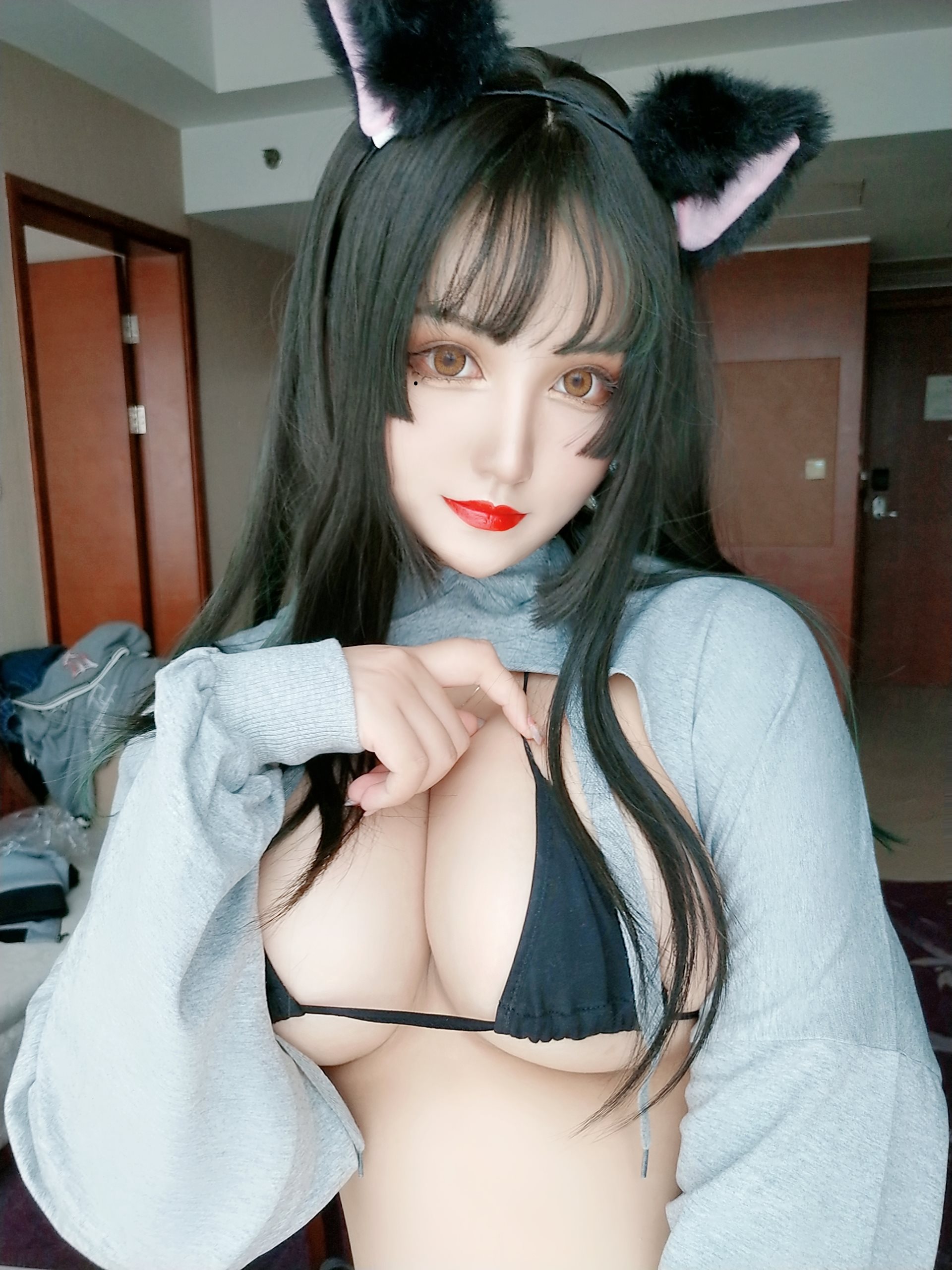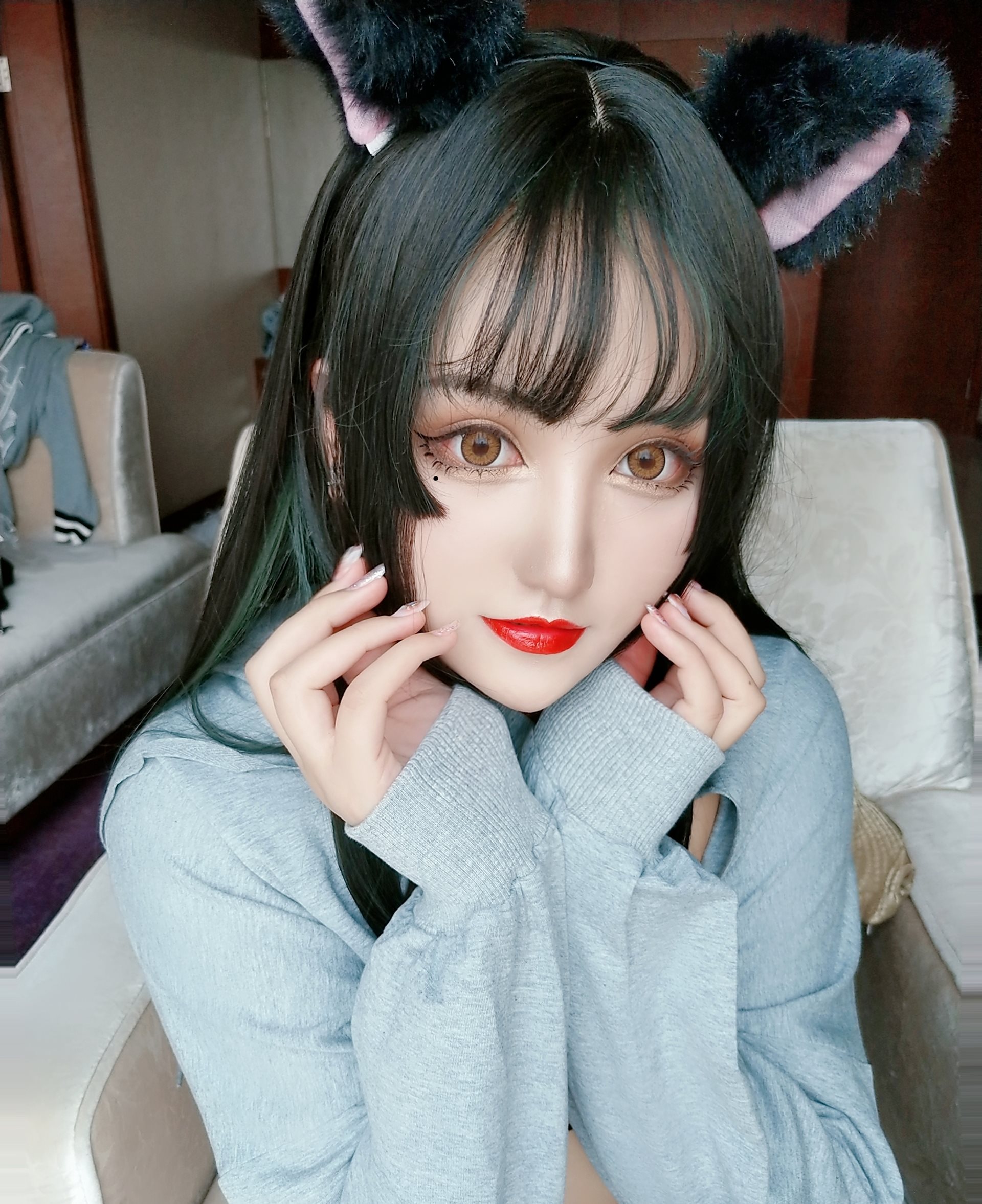 夏鸽鸽不想起床-猫耳 白+黑-猫耳卫衣黑