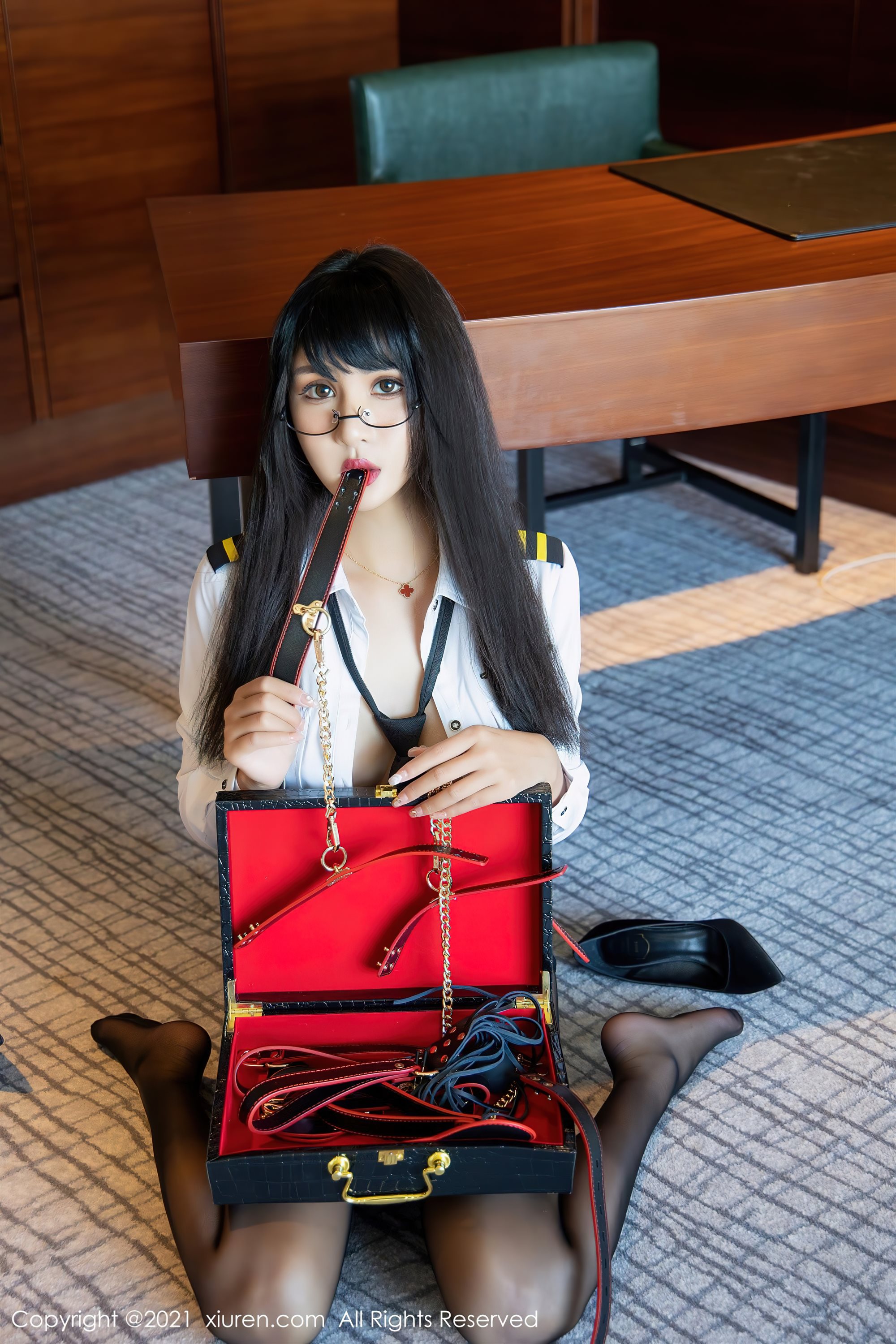 [XiuRen] No.4207 モデルエミリー陰飛のプライベートエロランジェリーシリーズ、インナー黒パンストなしお尻誘惑写真